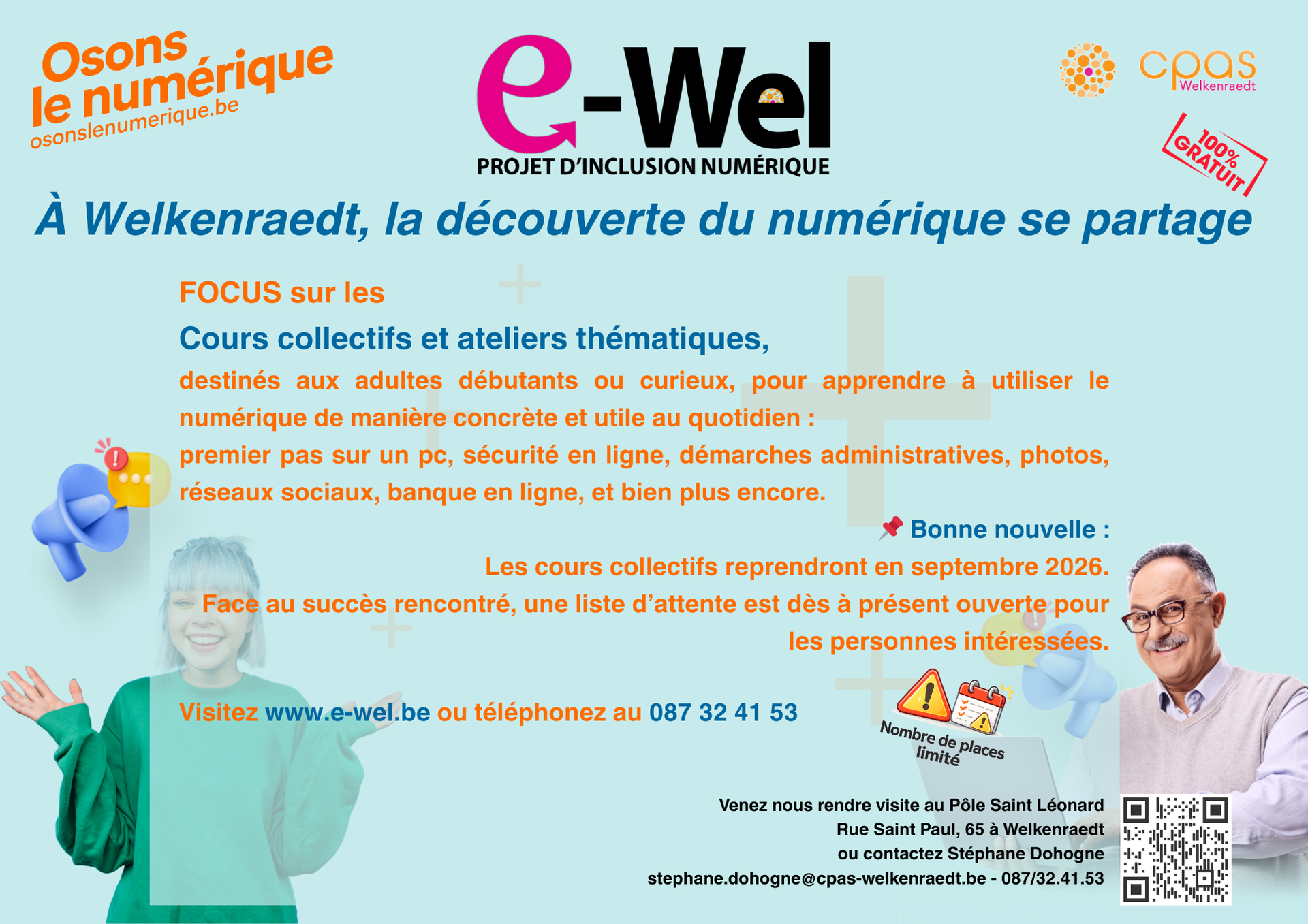 E-Wel est une initiative portée par le CPAS de Welkenraedt visant à réduire la fracture numérique et à offrir à chacun les moyens de s’adapter aux nouvelles technologies.